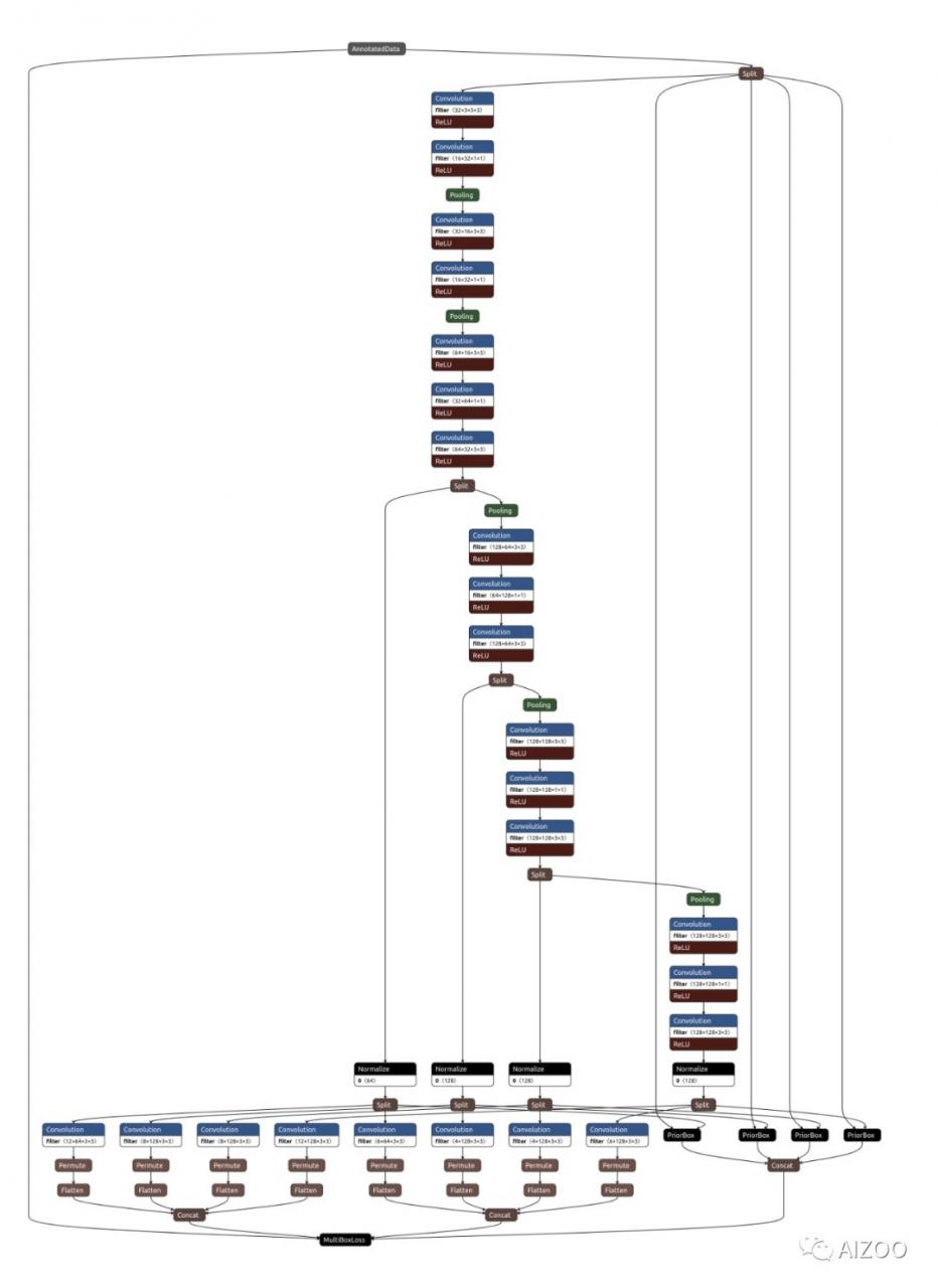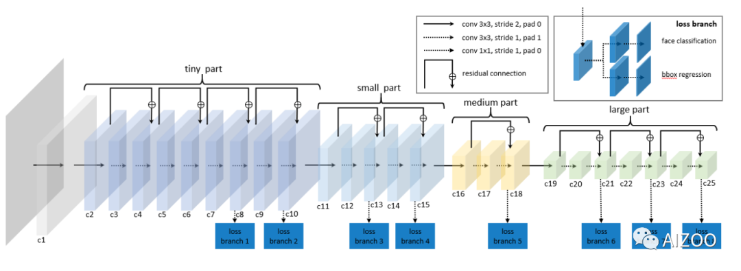 从名字可以看出来,这也是一个面向边缘设备的检测模型,该模型同样是 SSD架构的,不过相比前述两个模型,该模型有八个定位层,分别对应tiny、small、medium和large四个尺度,backbone 网络共有 25 个卷积层。