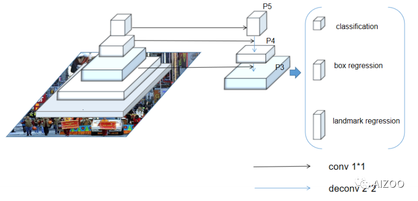 模型结构也比较简单,就是一个轻量级的 SSD 架构,共四个定位层,而且借鉴了RetinFace的关键点方法,可以同时回归5个关键点。模型体积只有232万,体积仅有3.34M