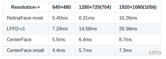 下图是CenterFace的速度,在 2080TI上可以仅4.4ms。Anchor Free的模型,没有NMS的过程,也能节省很多后处理时间。
