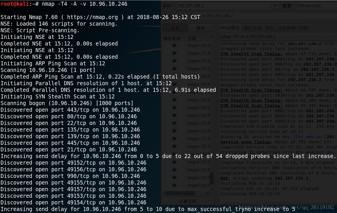 -v 表示显示冗余信息,在扫描过程中显示扫描的细节,从而让用户了解当前的扫描状态