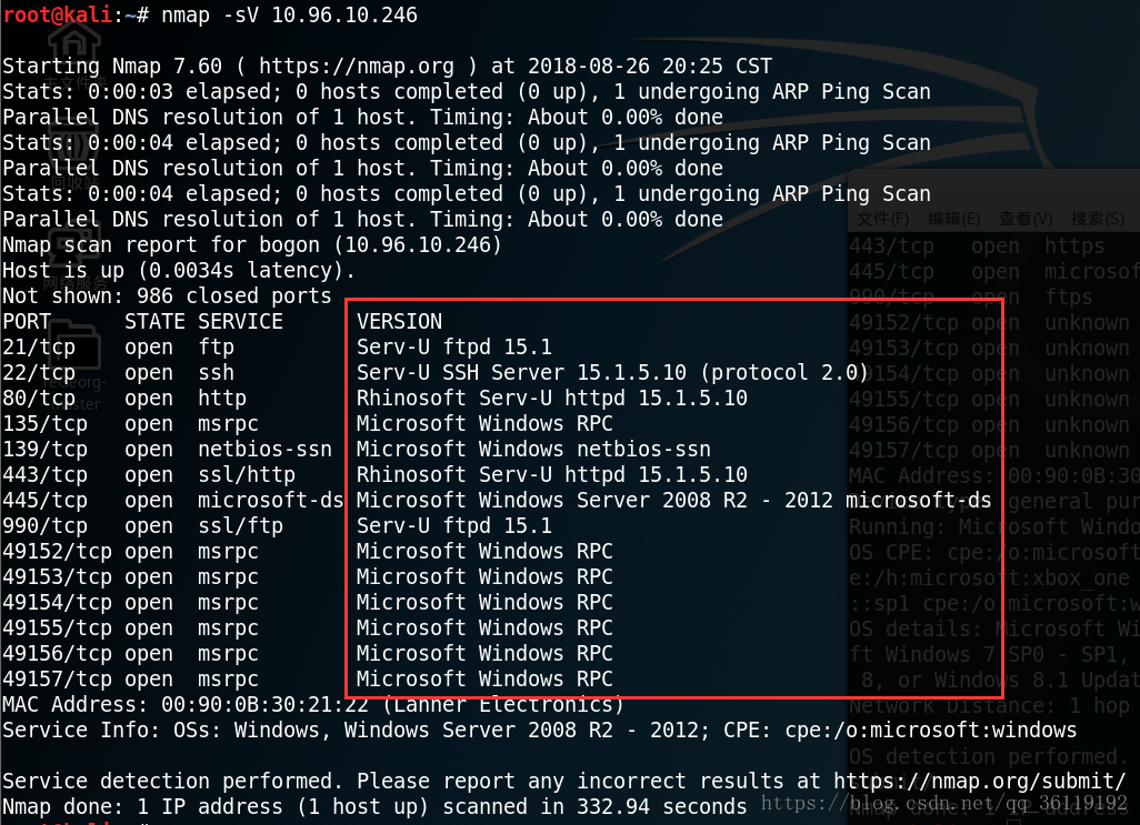 Nmap进行服务版本扫描