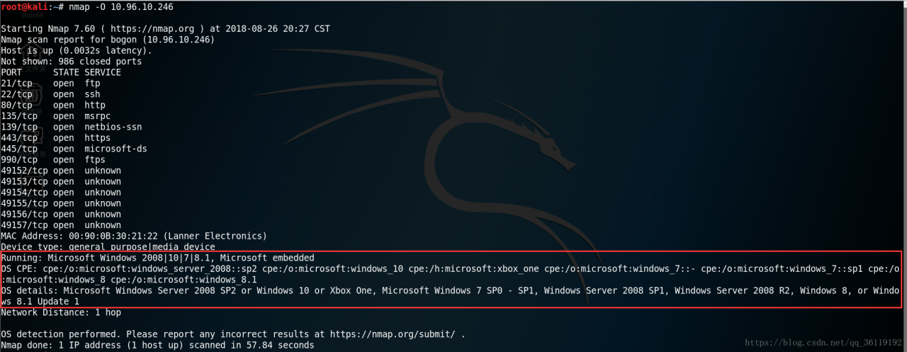 Nmap进行系统版本扫描