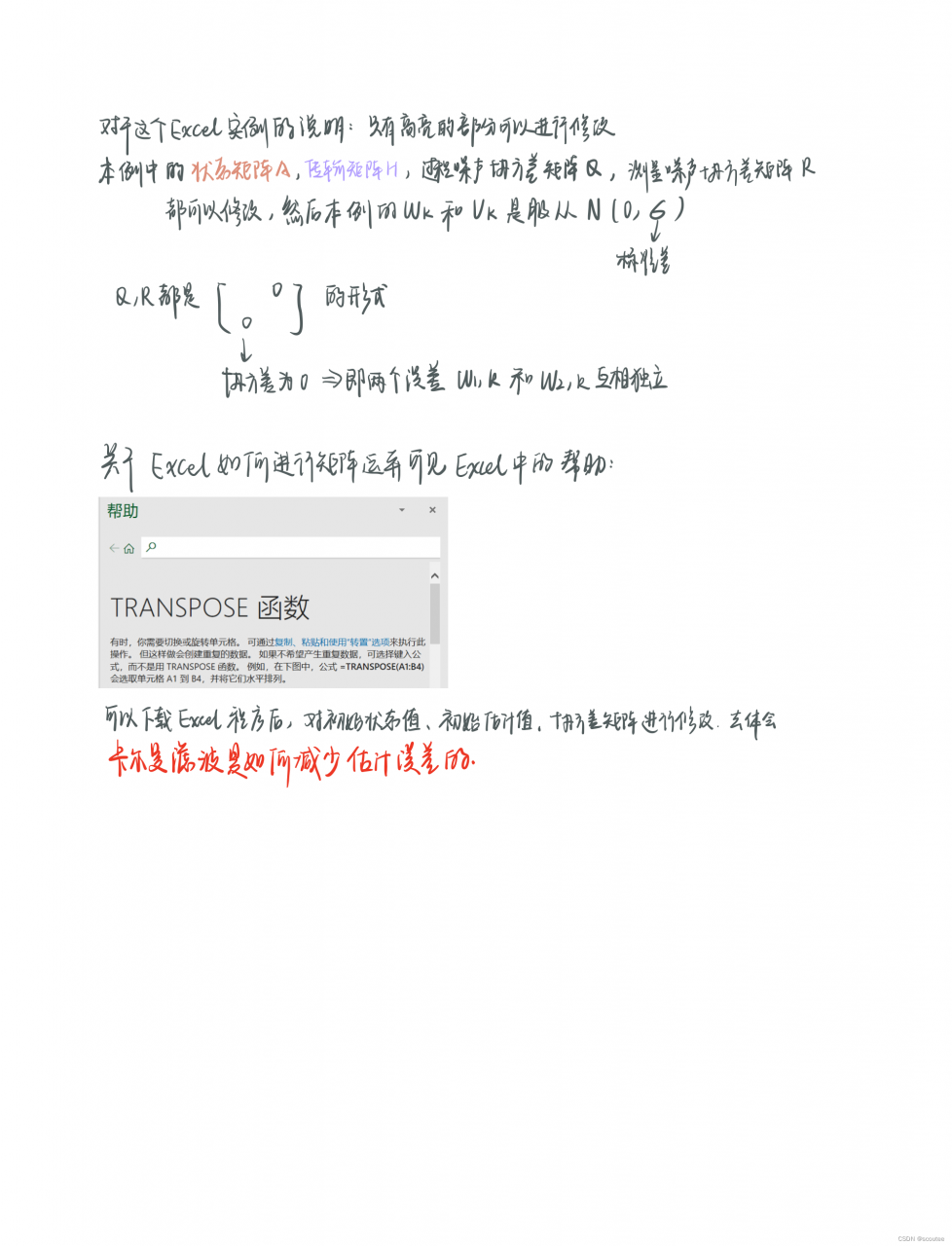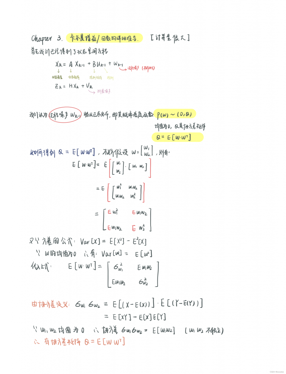 Wk的协方差矩阵为Q,Vk的协方差矩阵为R: