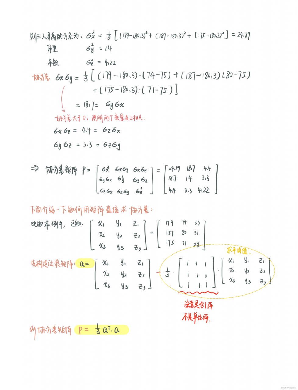而在这个示例中,Wk/Vk的偏差是以其协方差矩阵来反映的(主对角线是方差)。