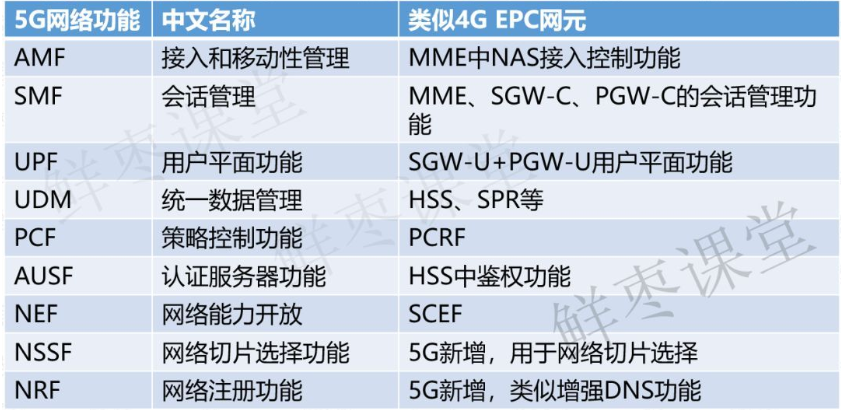 有一个明显的外部表现,就是网元大量增加了。除了UPF之外,都是控制面。