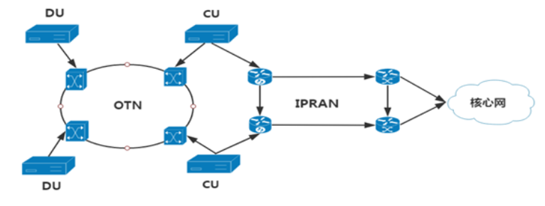 1 、利用分组增强型OTN设备组建中传网络,回传部分继续使用现有IPRAN架构。