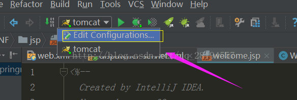 6.配置Tomcat,选择edit configurations.