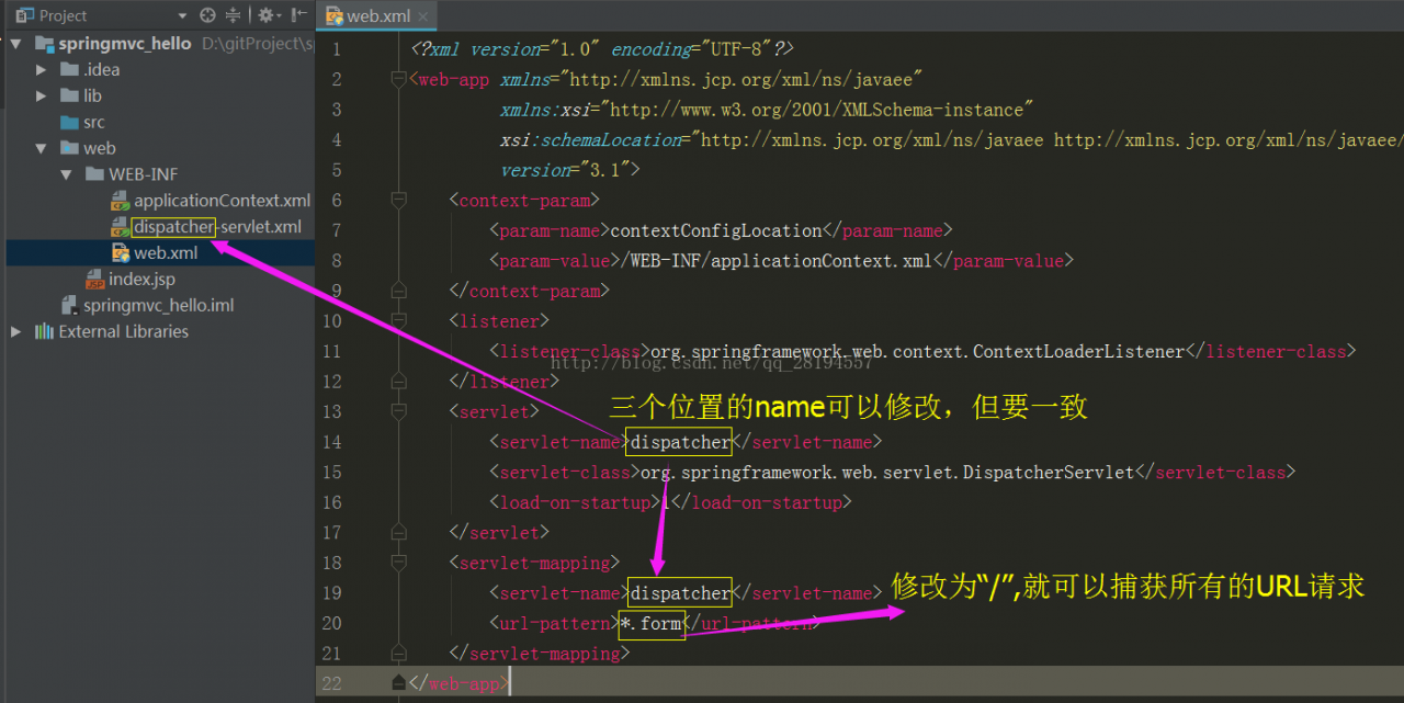 这里只需要修改一个地方,将url-pattern地方修改成“/”。