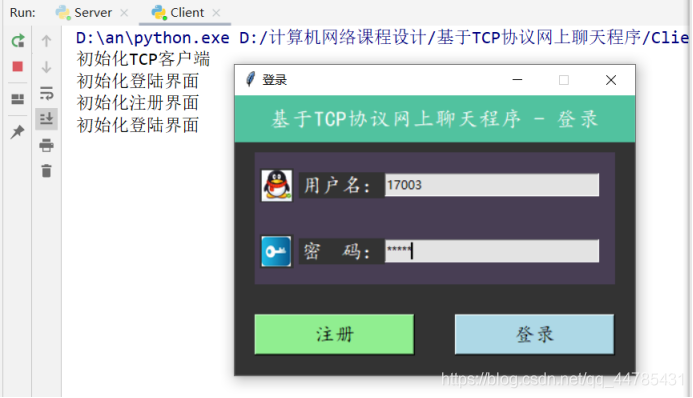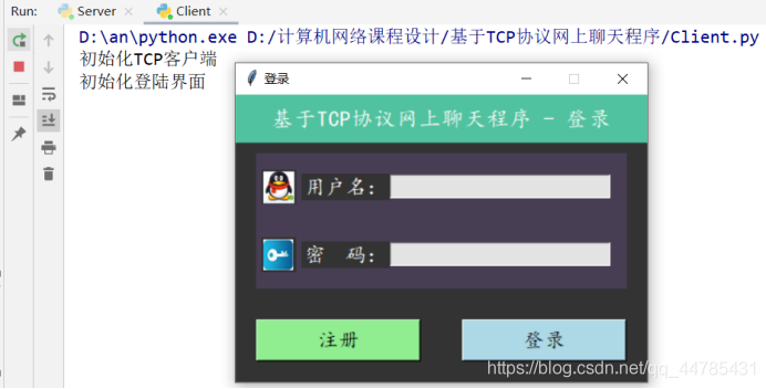 接着运行客户端的程序,进入登录界面。