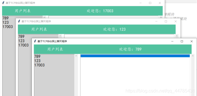 (3)显示在线用户,用户登录或退出成功,都会刷新在线用户列表;