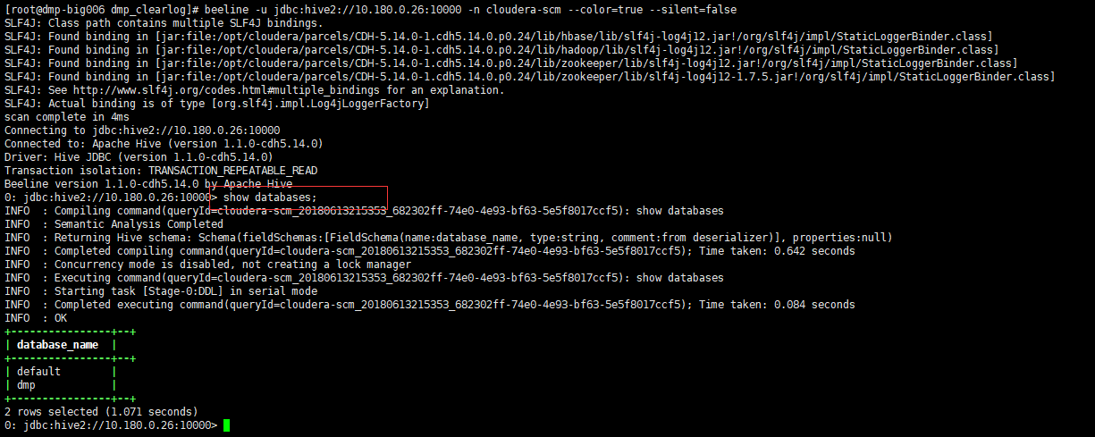 -u jdbc:hive2://10.180.0.26:10000 -n cloudera-scm