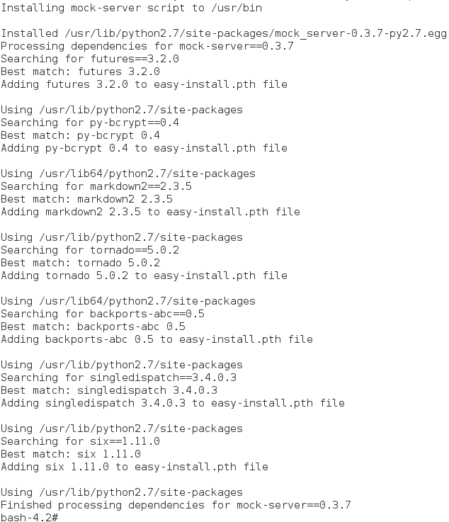从该路径可看到装在了/usr/lib/python2.7/site-packages/mock_server-0.3.7-py2.7.egg
