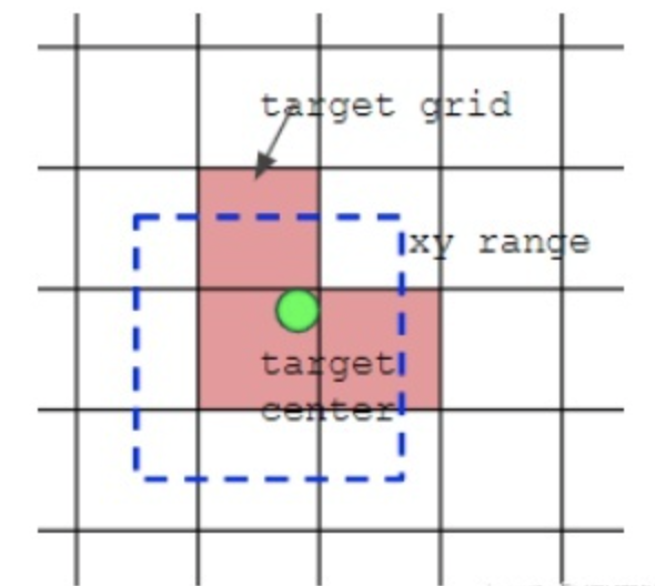如上图所示,绿点表示该 Bbox 中心,现在需要额外考虑其 2 个最近的邻域网格也作为该 bbox 的正样本 anchor。从这里就可以发现 bbox 的 xy 回归分支的取值范围不再是 0 ~ 1,而是 -0.5 ~ 1.5 (