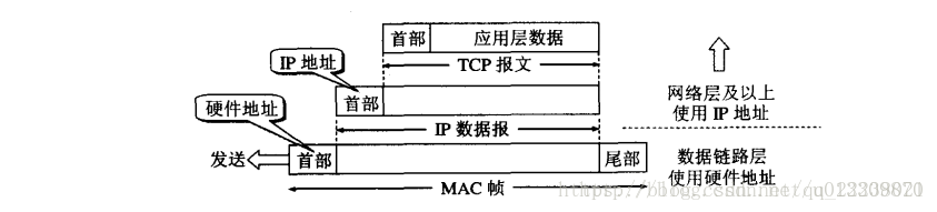 在发送数据时,数据从高层到低层,然后才到通信链路上传输。使用IP地址的IP数据报一旦交给了数据链路层,就被封装成了MAC帧。MAC帧在传送时使用的源地址和目的地址都是硬件地址。连接在通信链路上的设备(主机或路由器)在接收MAC帧时,根据是MAC帧首部的硬件地址。在数据链路层看不到隐藏在MAC帧中的IP地址。只有在剥去MAC帧的首部和尾部后把MAC层的数据交给网络层后,网络层才能在IP数据报的首部中找到源IP地址和目的IP地址。