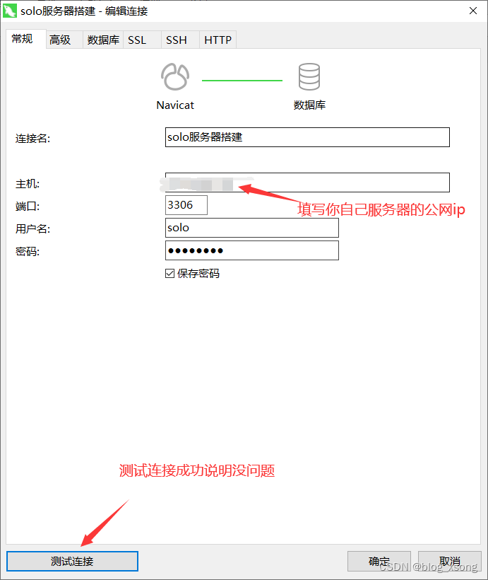测试是否能远程连接,使用navicat测试,测试完毕之后MySQL准备工作完成!