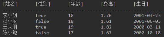 studentList.add(new StudentInfo(“李小明”,true,18,1.76,LocalDate.of(2001,3,23)));