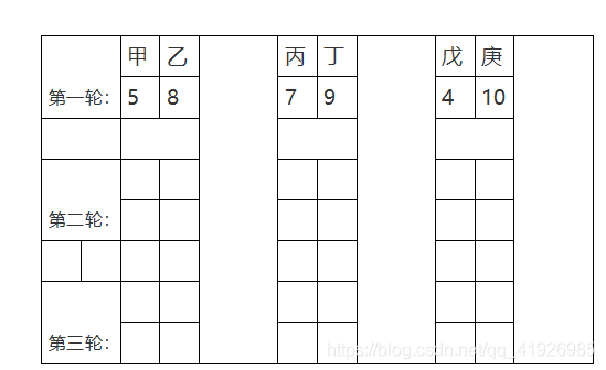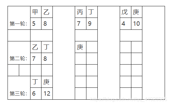将比分低的进行淘汰,随后我们将晋级的参赛队员进行两两分组,这里会有一个人没法分组,那么在第二轮直接轮空。