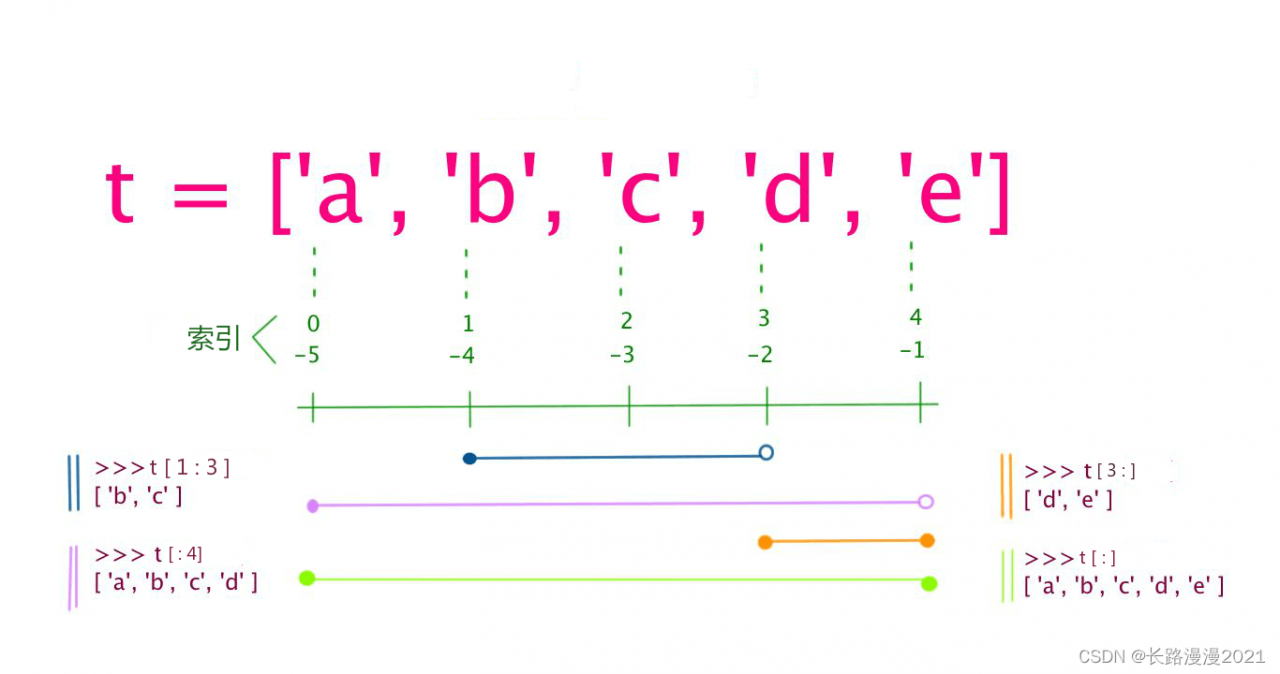 列表中值的切割也可以用到变量 [头下标:尾下标] ,就可以截取相应的列表,从左到右索引默认 0 开始,从右到左索引默认 -1 开始,下标可以为空表示取到头或尾。