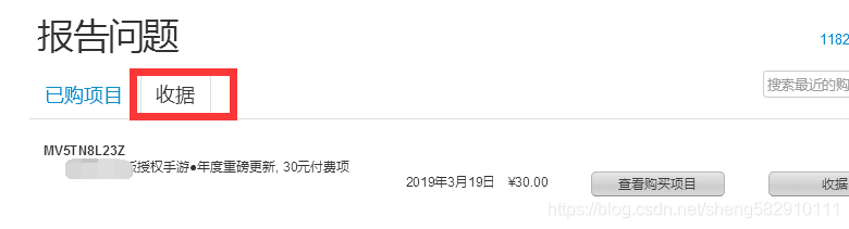 4.选中收据选项卡,这里可以查询到需要退款的订单编号。