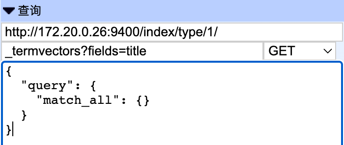 es查看某字段分词结果GET /{index}/{type}/{id}/_termvectors?fields={fieldName}如图:版权声明:本文为weixin_42653522原创文章,遵循CC 4.0 BY-SA版权协议,转载请附上原文出处链接和本声明。原文链接:https://blog.csdn.net/weixin_42653522/article/details/123450303