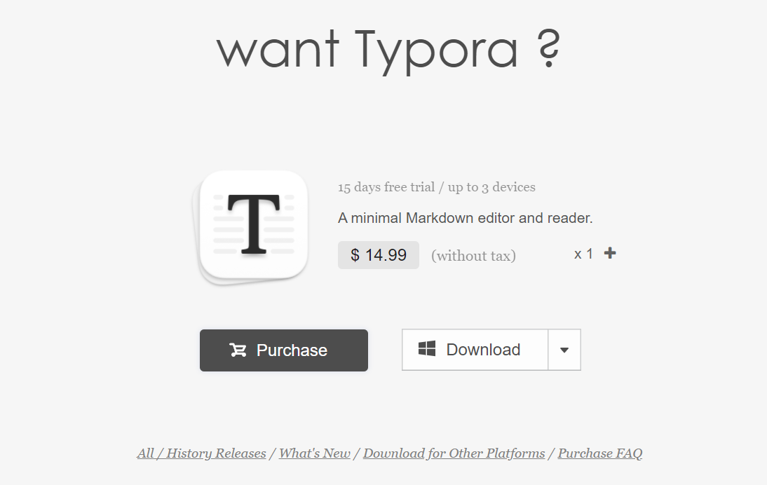 注意:目前官网对1.0版本的Typora已经开始收费,也不算贵,可以支持,想白嫖就不用1.0版本就好。