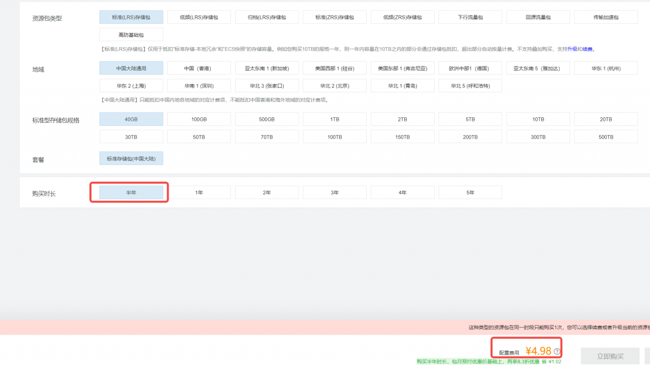 3.1、注册阿里云账号、选择对象存储OSS折扣套餐