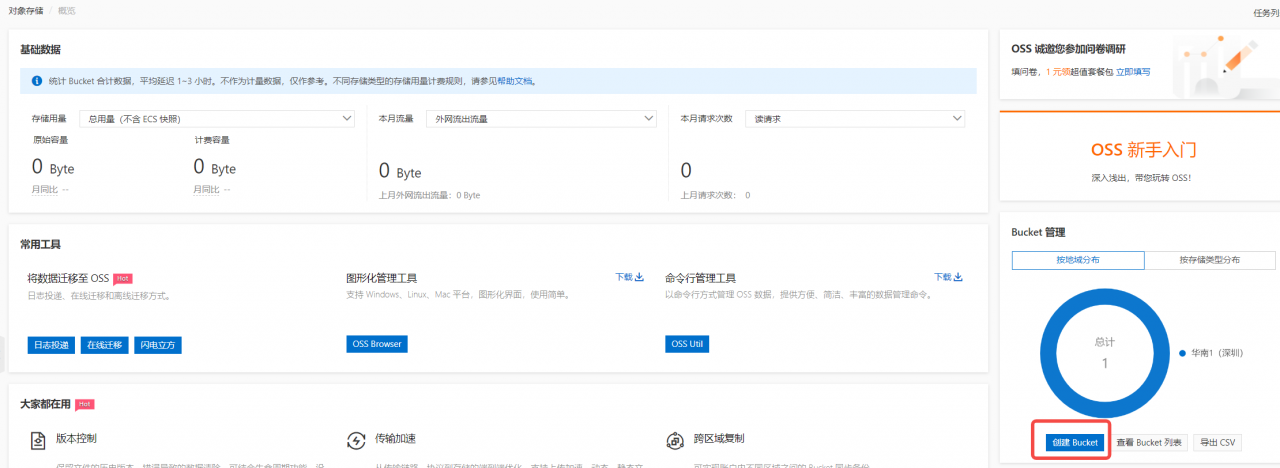 - 然后,点击下图标识,创建bucket,名称按照提示写就行。