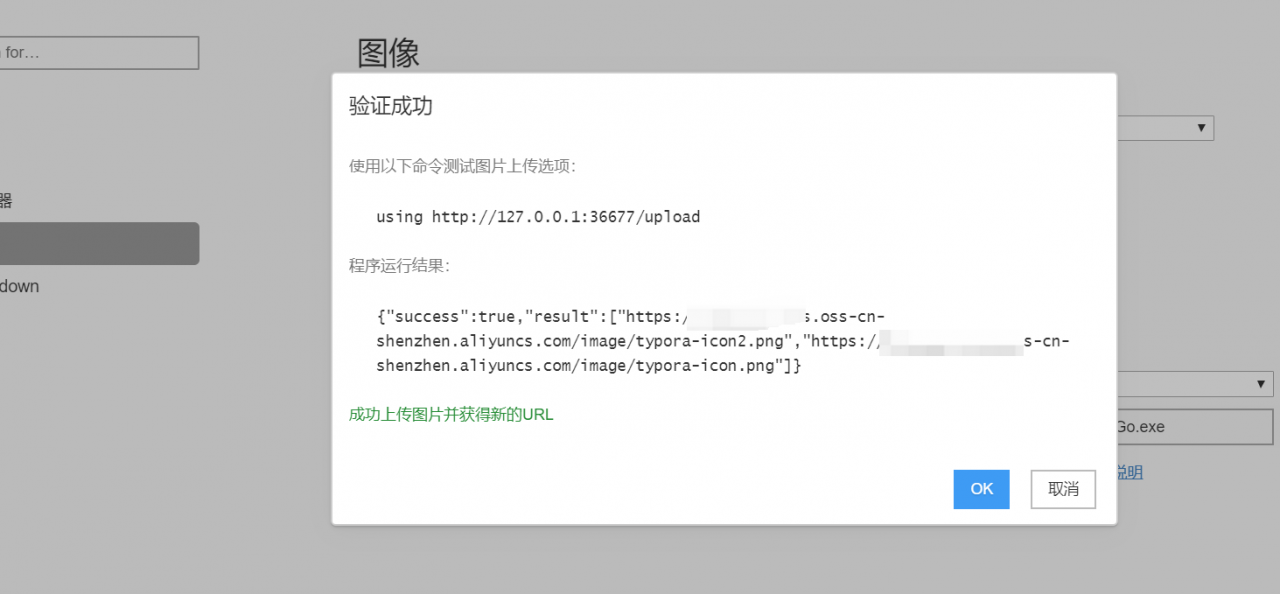 - 点击验证图片上传选项,弹出如下界面,则为设置成功。