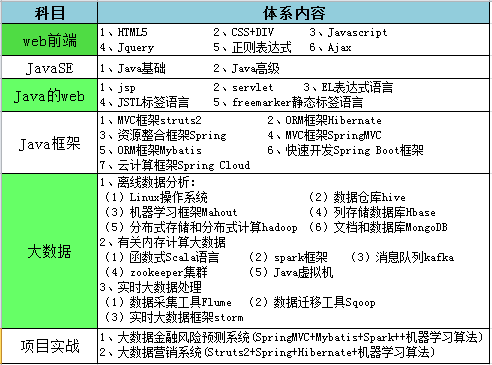 对于普通在校大学生来说,参加岗前实训能够有效的把理论和实践结合起来,快速获得动手能力的提升并到达企业对于软件工程师的技能要求,从而获得更高的职业起点和更好的职业发展前景的有效途径。Java发展成熟、功能强大、使用Java开发的大数据框架非常多,而且在企业部署也非常多。即使有的大数据框架不是使用Java开发(例如spark),但是其还是运行在Java虚拟机上,那么Java就成了大数据时代的项目实战首选。由于Java生态圈很成熟庞大而且大数据生态圈也逐渐成熟并庞大,所以刚入行的朋友们面对眼花缭乱的成熟的Java大数据生态圈弄不清头绪,所以本文将按照下列内容给大家梳理下如何来学Java大数据生态体系以及具备怎样的基础才能开始学习。