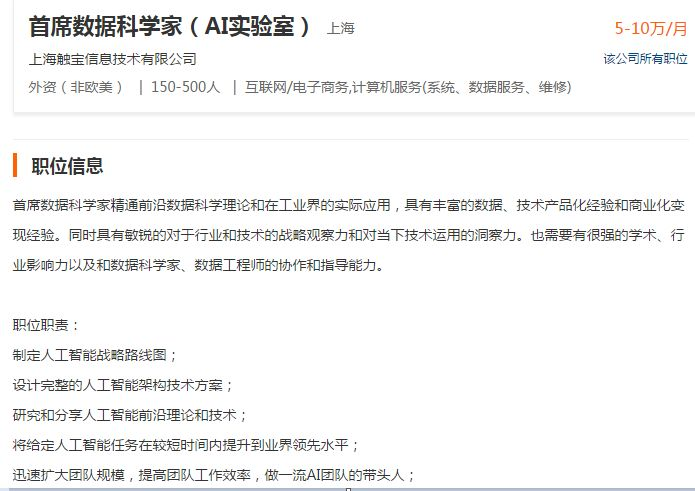 这里截取前程无忧招聘网站的部分招聘需求,读者可输入上述岗位自行搜索: