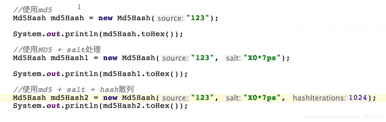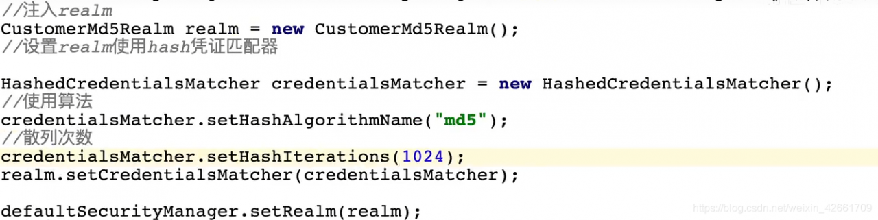 通过设置Realm的匹配器来加入MD5 + Salt :