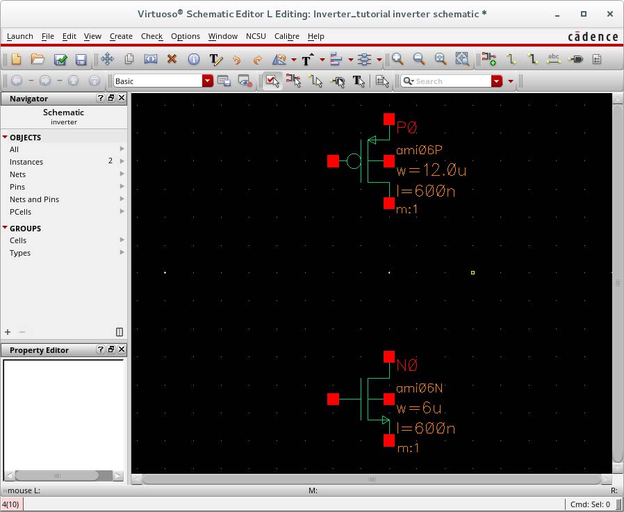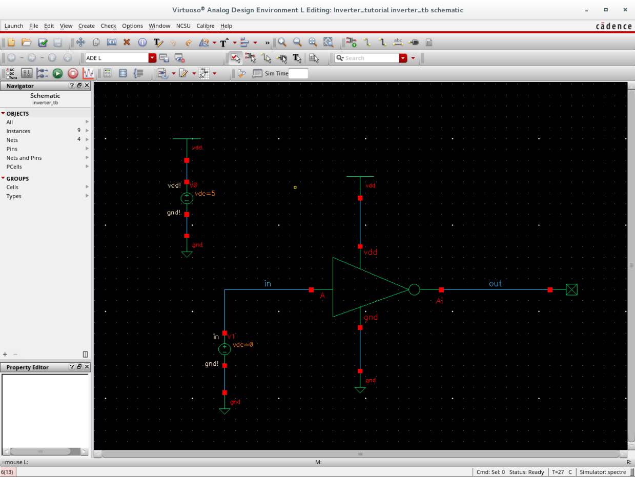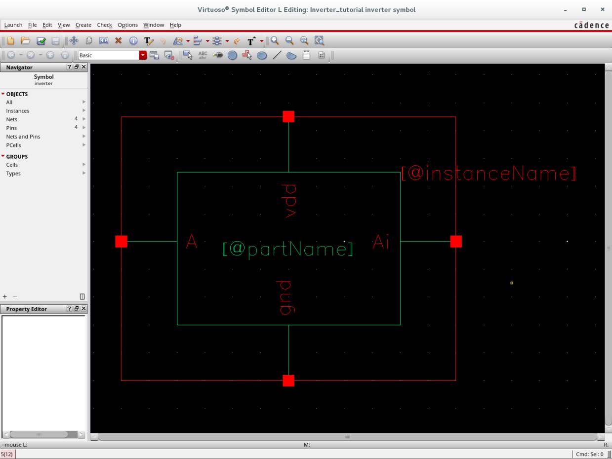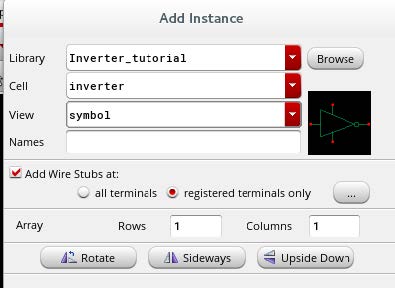 把刚刚画的inverter的symbol放置进去