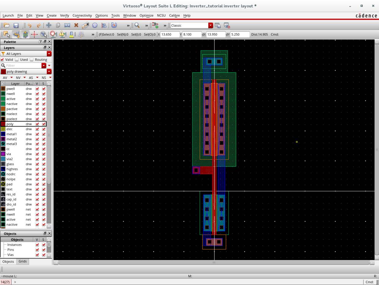 这一篇主要讲如何用cadence仿真一个简单的反相器,并画出版图的全部流程。工艺使用ncsu-free-cdk。