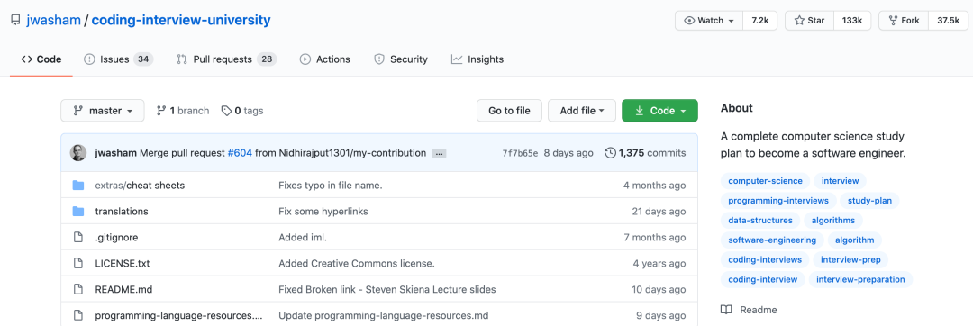 后来这个项目改名为现在的「coding interview university」。