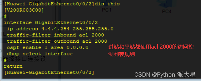 traffic-filter inbound acl 2000 //流量过滤使用编号为acl 2000的访问控制列表