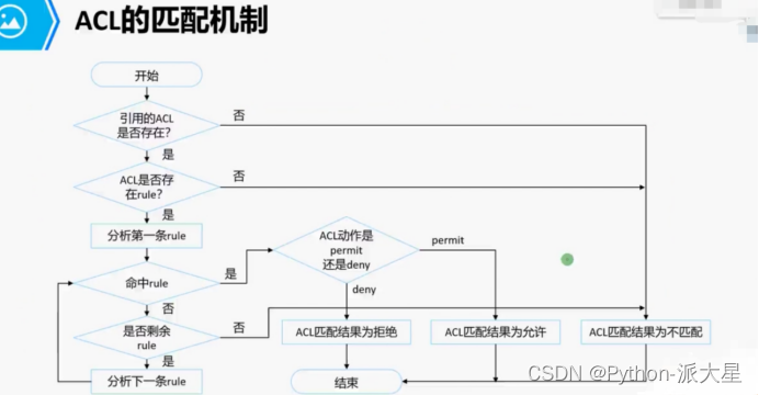 6、若命中规则为permit,则ACL匹配结果为允许。若命中规则为deny,则ACL匹配结果为拒绝。
