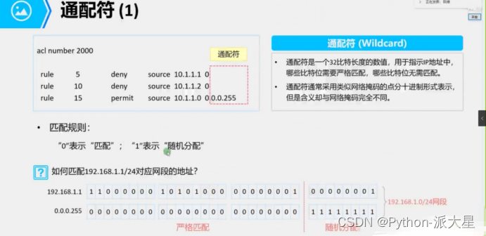 ACL用到通配符掩码,0代表匹配,1代表忽略,0和1可以不连续。