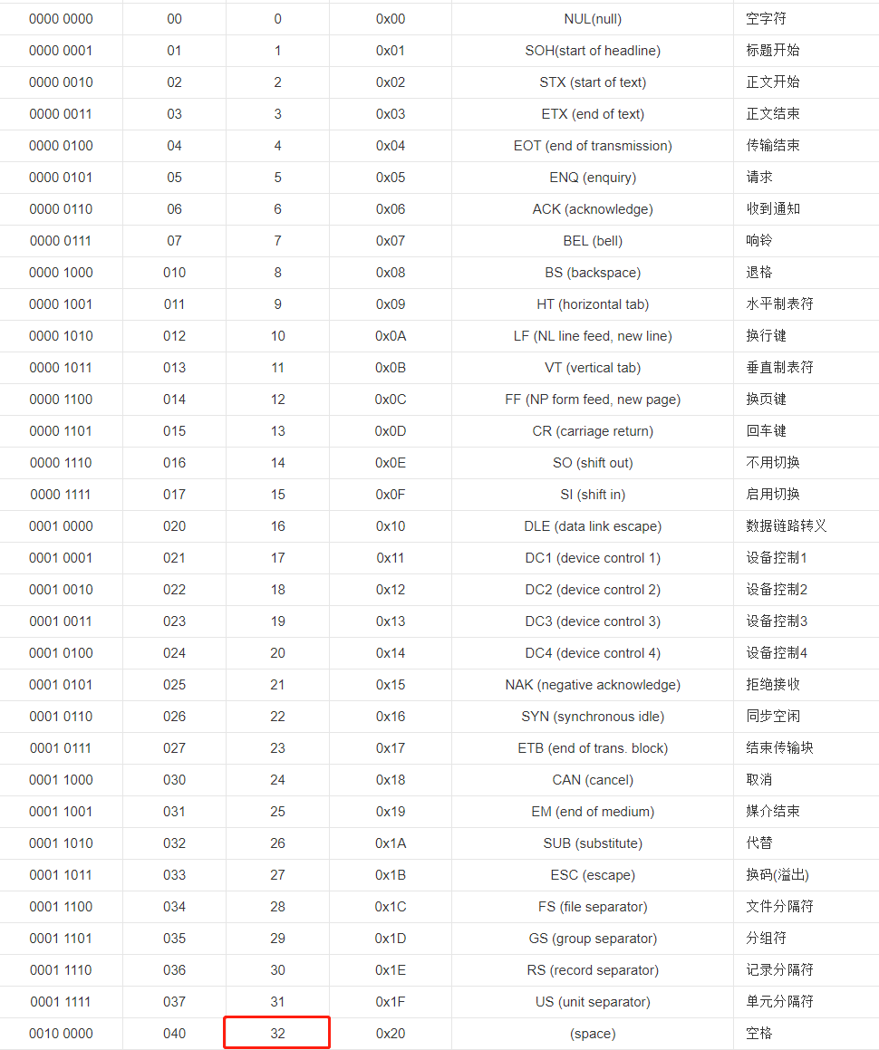 空格在 ASCII 码表中排行是 32位,可以看到 tab,换行,回车等都在 trim 的控制范围内。