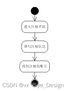 用户管理针对所有用户和管理员。未注册用户点击注册,进入注册页面填写新用户,得到自定义生成账号后,注册完成。未注册用户注册的活动图如下图所示。