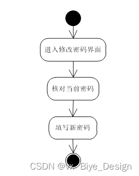 用户功能界面可对自己的密码进行修改。进入修改密码界面后核对当前密码,核对成功后填写新密码。修改密码活动图如下图所示。