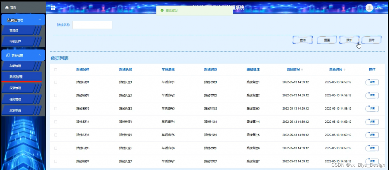 发布路线,并可以销毁某个路线,更新路线数据,模糊搜索路线数据等。