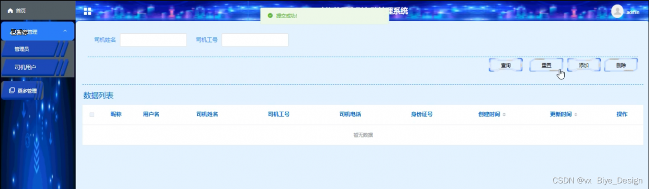 发布司机,并可以销毁某个司机,更新司机数据,模糊搜索司机数据等。