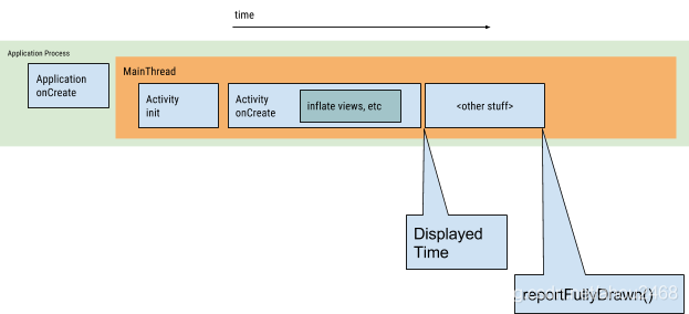 你就需要调用Activity的reportFullyDrawn()。它将在log里报告从apk初始化(和前面Displayed的时间是一样的)到reportFullyDrawn() 方法被调用用了多长时间;