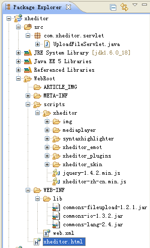 });把 下载的xhEditor源代码包中的相关文件拷贝到自己的web目录,可以创建一个文件夹scripts存放。