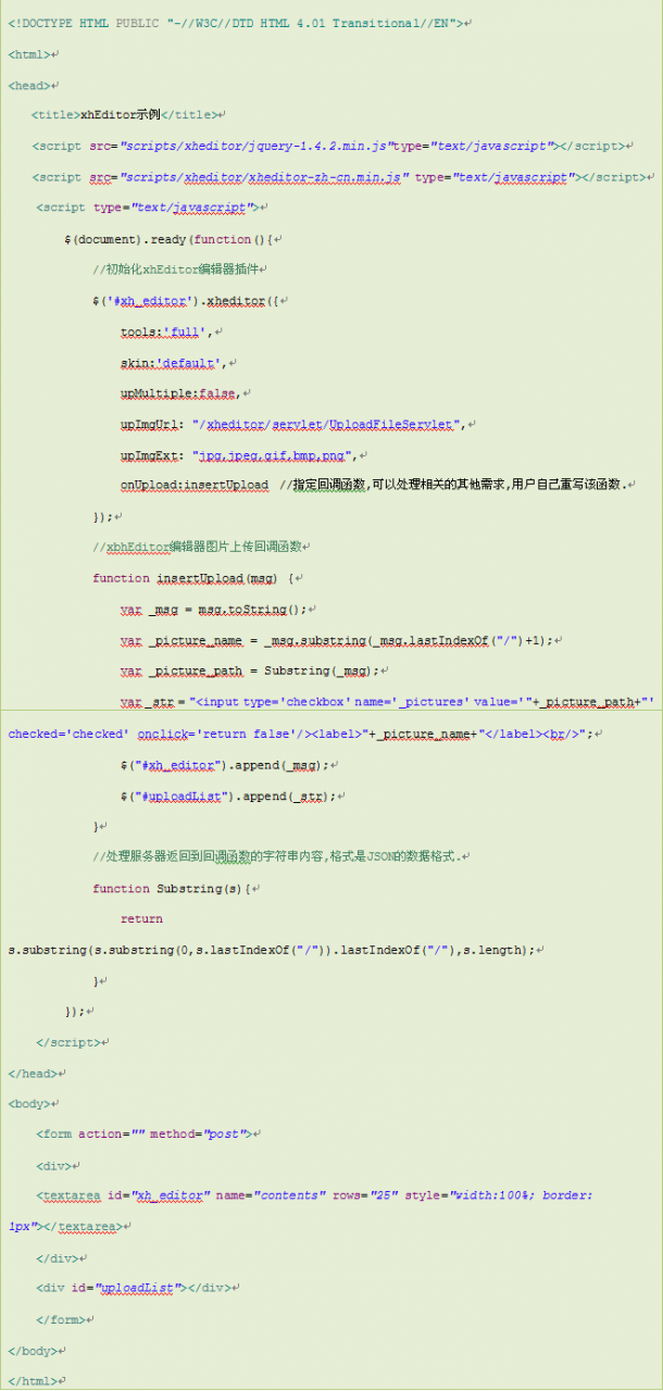 最近在做项目的时候需要使用到HTML编辑器,虽然FCKEditor、 CKEditor等很多现成的工具,但是为了相对的轻量级设计,选择了xhEditor。苦于网上很难找到相关的基于Java的后台实现,故花了点时间做 了个编辑器的小demo,主要是解决图片上传的问题。