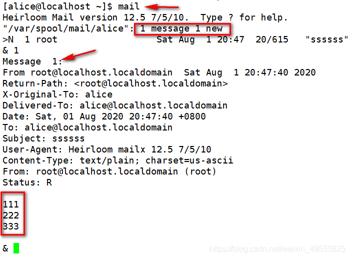 [alice@localhost ~]$ mail