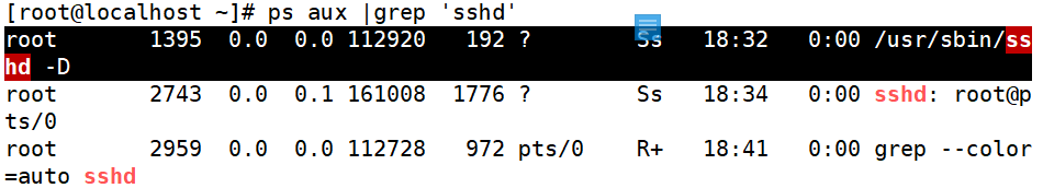 [root@localhost ~]# ps aux | grep 'sshd'