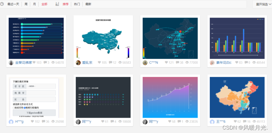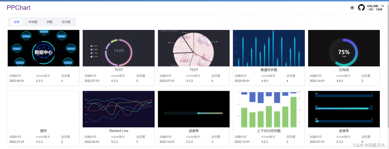 - 前言:2022年2月以前,ECharts官网除了提供官方案例外,还额外提供了一个ECharts案例资源丰富的强大社区Make A Pie来展示各类的ECharts案例。这对于广大开发者,特别是前端页面仔们来说简直是个福音网站。然后,现在却因不明原因,该社区被停用了。