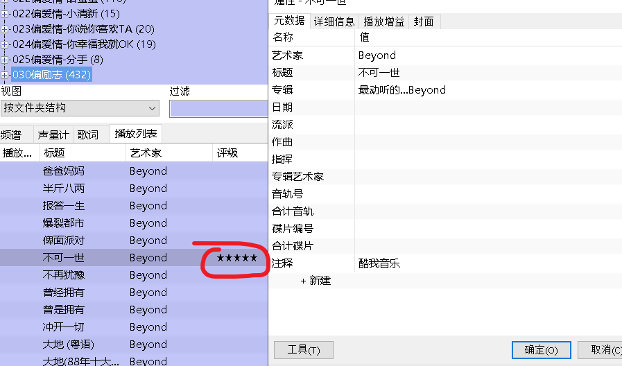 但我们还需要注意另一个问题:评级信息未存入歌曲的元数据标签中。
