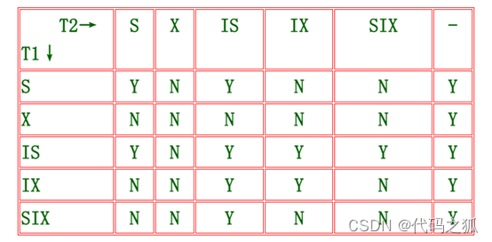 - SIX锁:表示对该节点加S锁,再对其加IX锁(其后裔节点需要被加X锁);表示要读该对象,同时需要修改其下部分数据